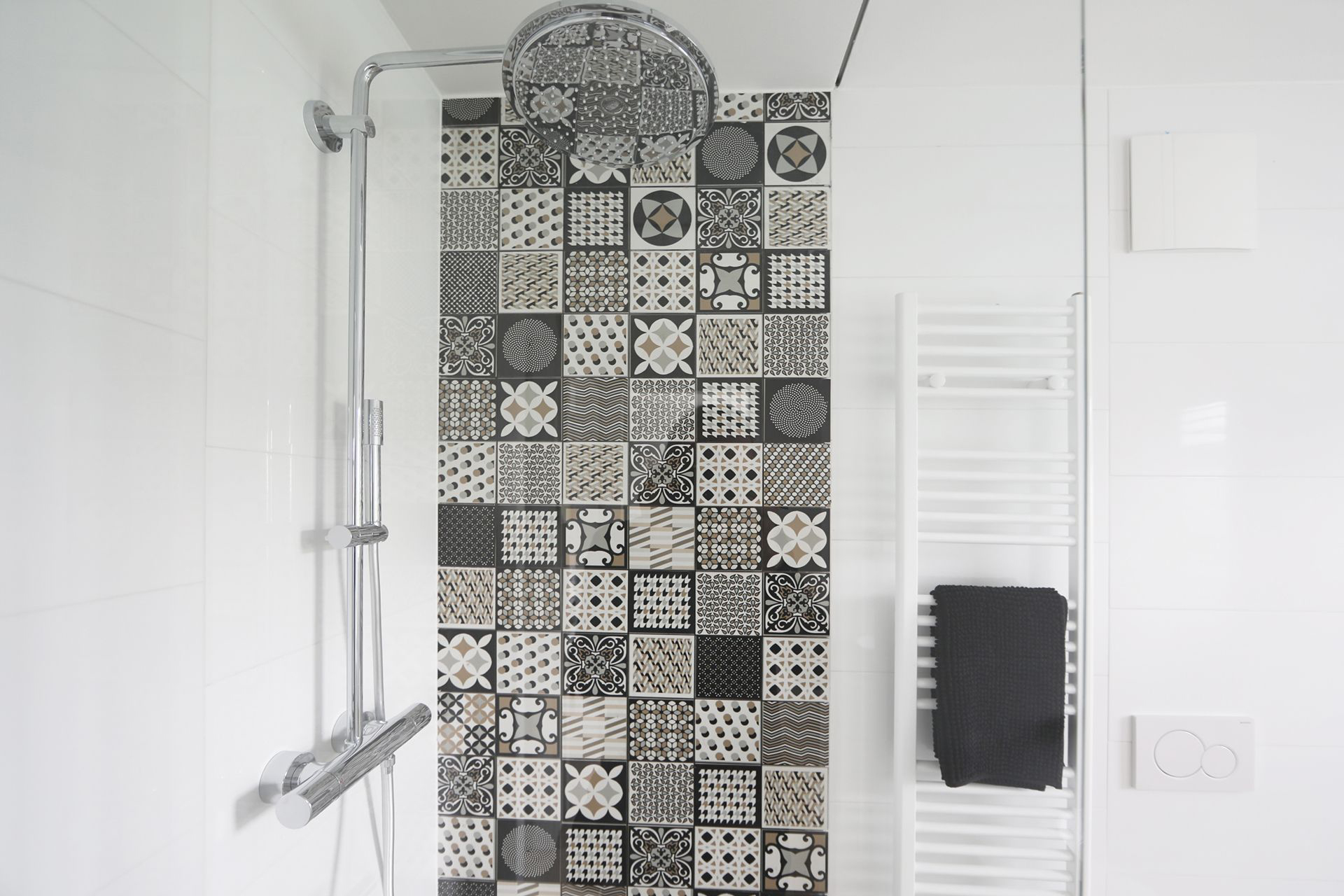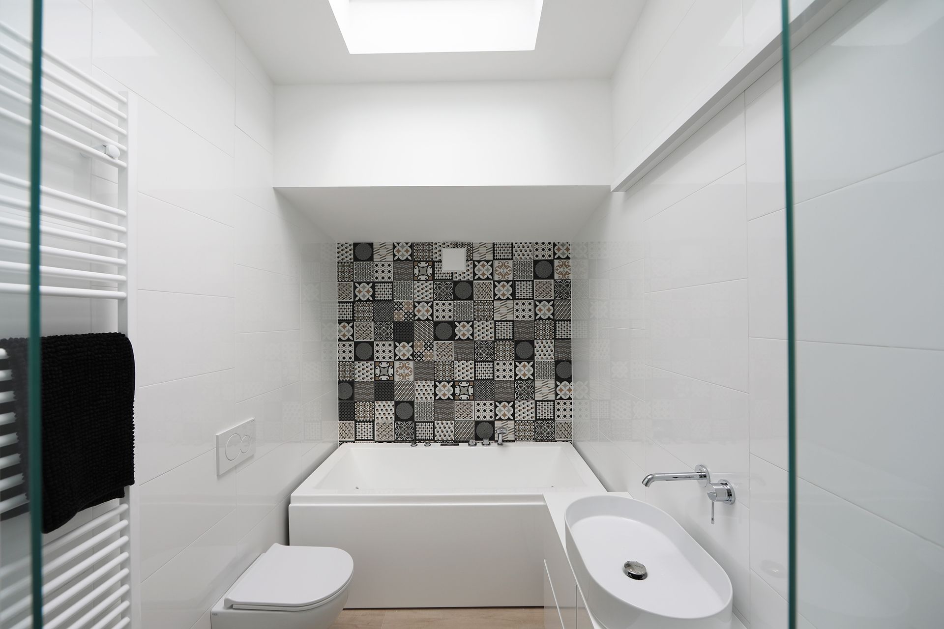 Kopalnica z walk-in tušem je tako kot vsi prostori naravno osvetljena.