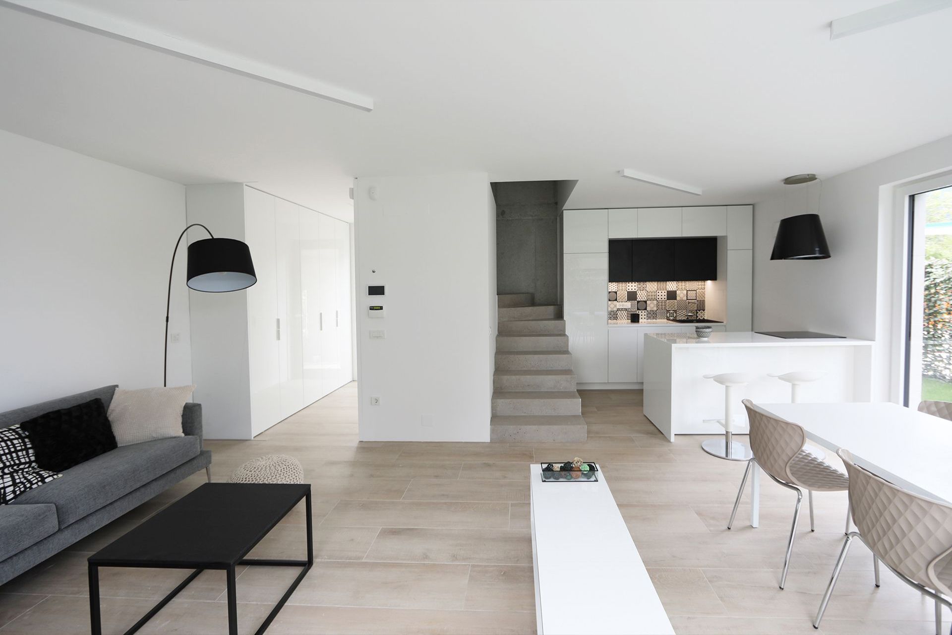 Svetel ambient s sodobno opremo čistih linij je lep okvir za harmonično življenje.